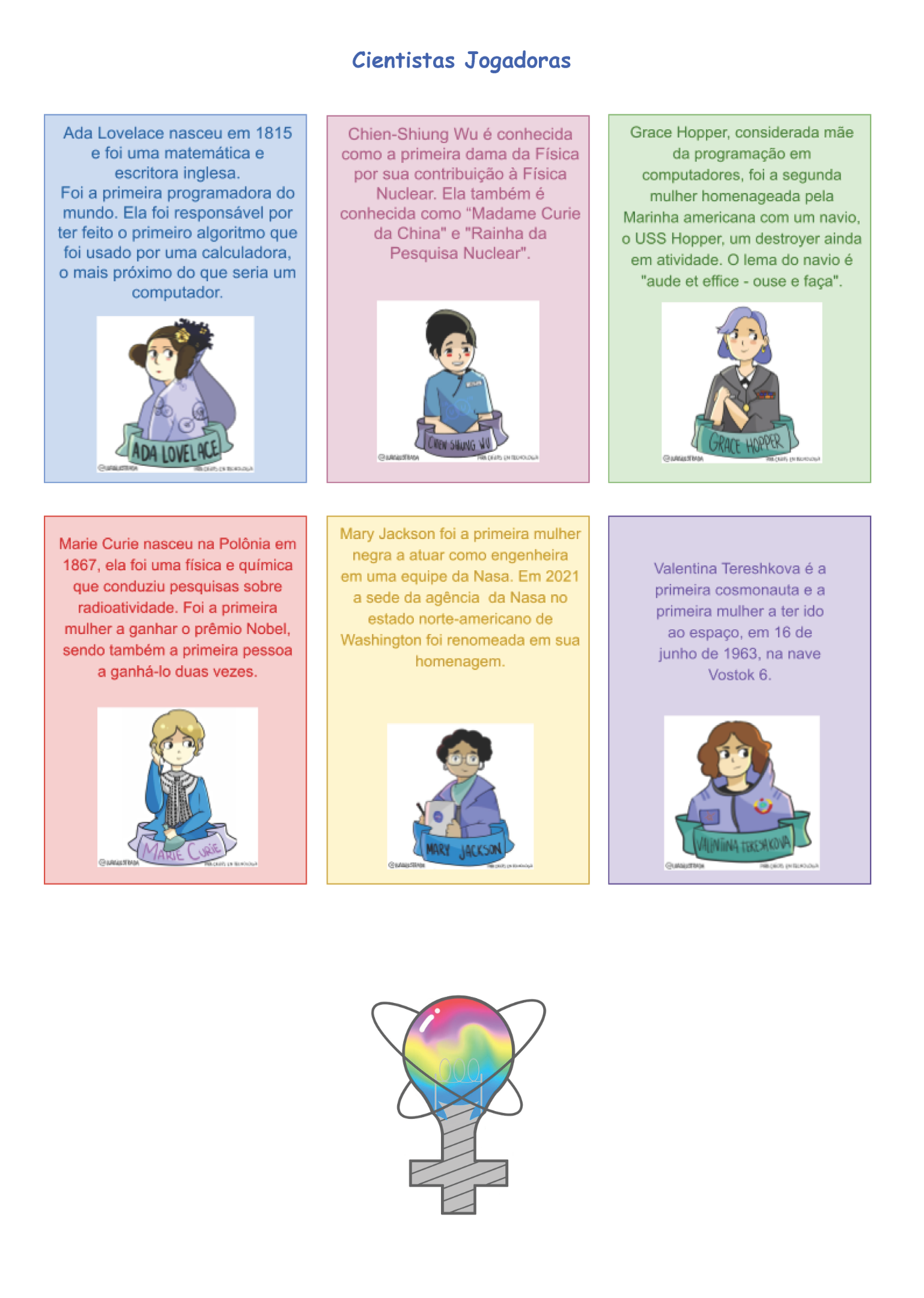 “Mulheres na Ciência” foi desenvolvido em um projeto extracurricular com a participação voluntária de estudantes das turmas de 9º ano da Escola Municipal Professora Zulma do Rosário Miranda, situada em Joinville, SC.